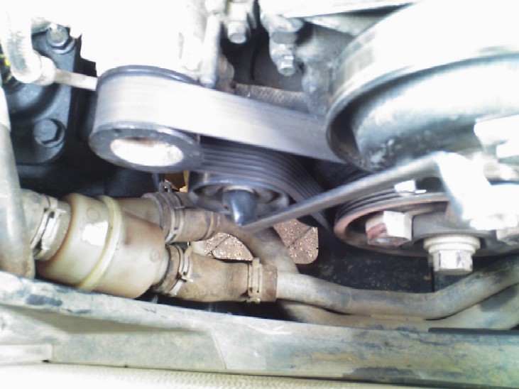 To also give more access (you will need it) also remove the drivers side intercooler hose. To hold the fan pulley from spinning, you can buy a tool, or you can make one up if you need one. The pulley is held on by 3x10mm bolts, remove 2 of them to start with.