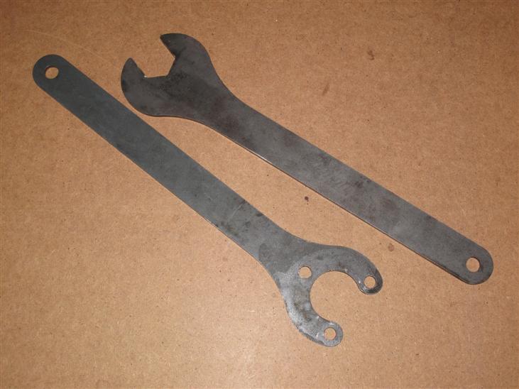 Next we need to remove the viscous fan itself. The fan has a NORMAL right hand thread. The best way to remove the fan is to use spanners like these below....