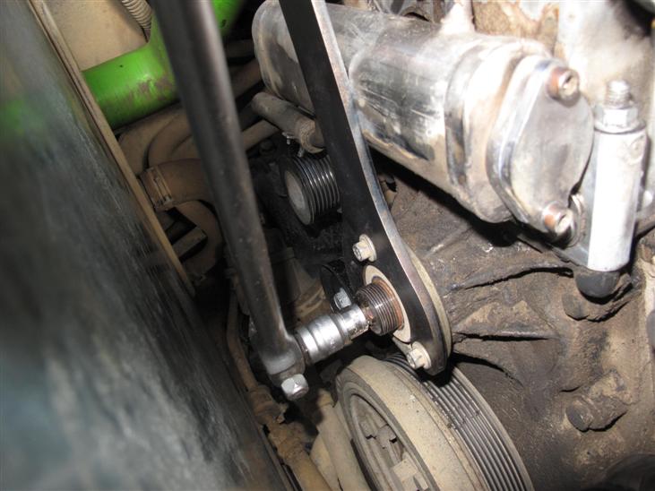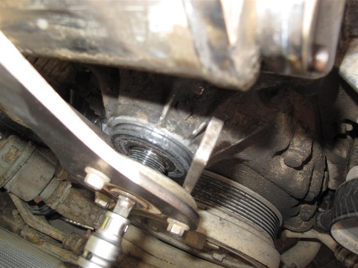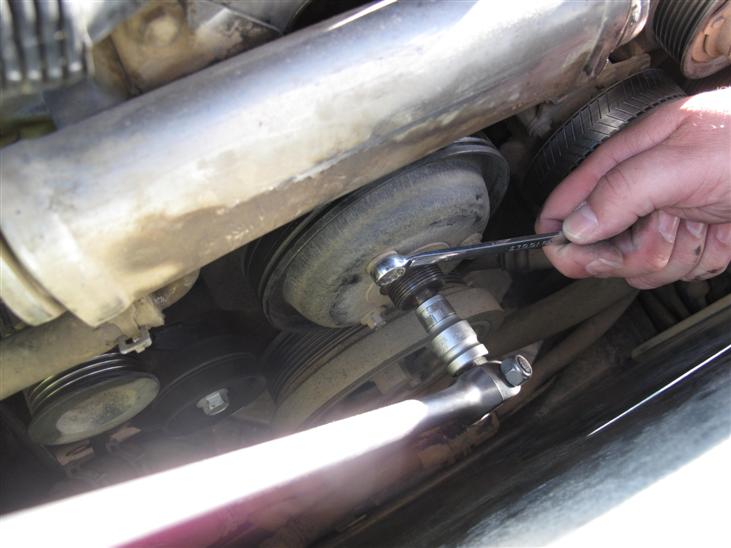 The flange on the pulley is threaded onto the shaft just like the viscous fan, so using the spanner to hold the flange and the 12mm hex in the centre,