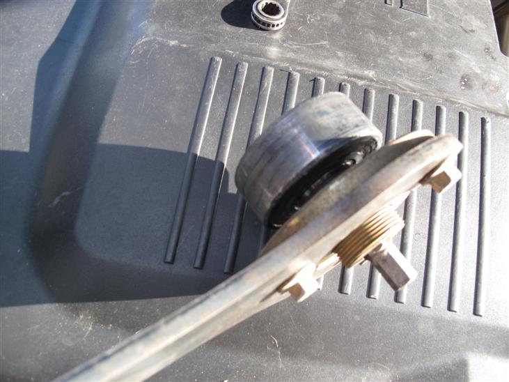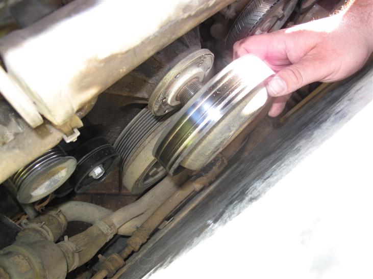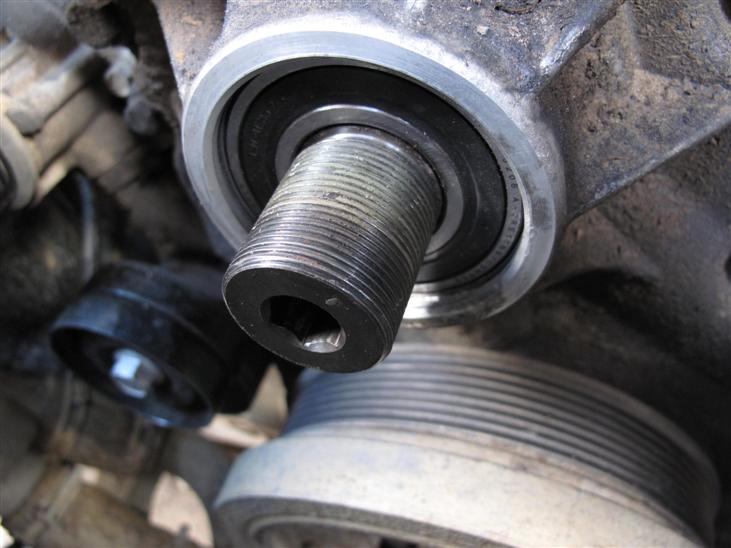 The 12mm Hex tool is CRITICAL to the bearing replacement job, so you will need to obtain one of those BEFORE attempting this job. I highly advise you get one in a bit that will fit a 1/2" breaker bar / ratchet tool. Once the bolts are undone, then remove the fan pulley..
