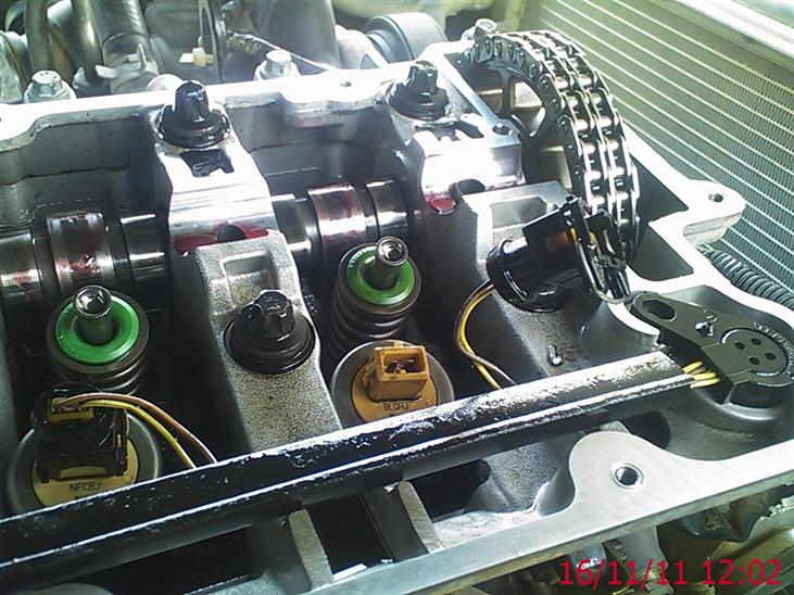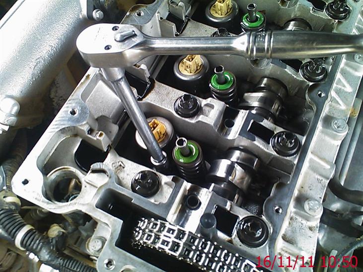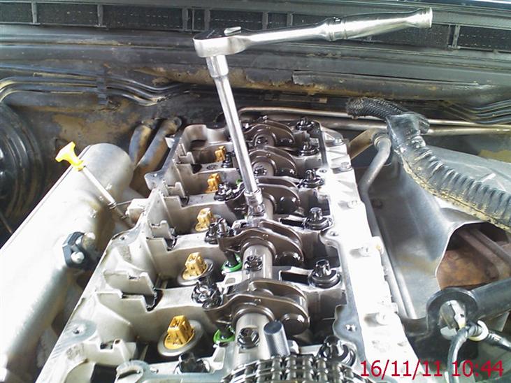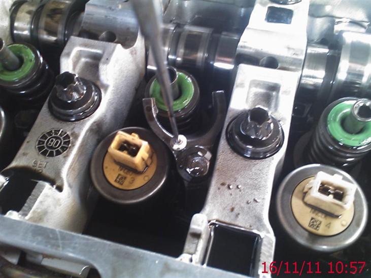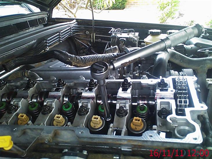 Now because there is not much room around the injectors as it is, and because of the position of the camshaft, you cannot fit the tool onto all injectors without rotating the engine to move the camshaft lobes away from each one.....