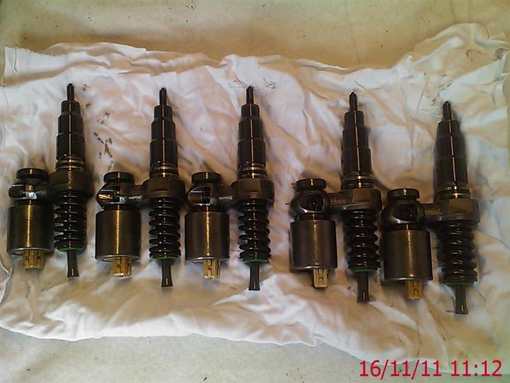 Codes arrowed above..................SO WRITE THEM DOWN!!!!! Right, removal of the injectors is not really difficult, BUT there is a specific land rover tool to do it, its a small slide hammer assembly which clamps around the injector and with a couple of small knocks out they come.