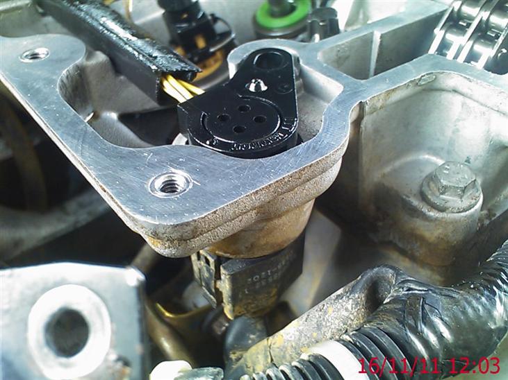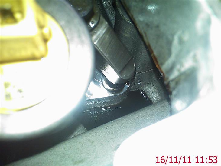 Above you can see the camshaft lobe will "snag" and stop the injector coming out, so remove the camshaft locking pin and rotate the engine until the camshaft lobe is clear from the injector......