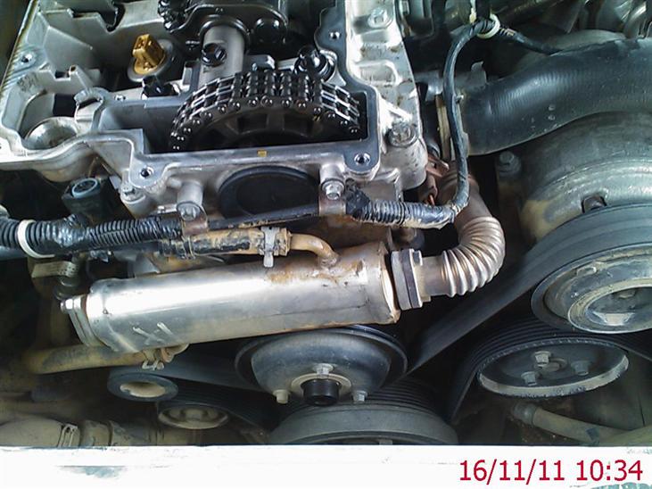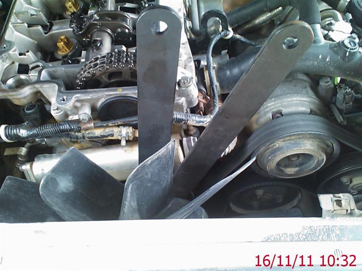 Take note of the EGR cooler fitted across the front of the engine, that's the "easy" way to tell you have a 15P or later engine (EU3 spec) fitted to your car, that will also mean it has "green top" injectors fitted. Once the fan is off, this will enable you to put a breaker bar and 24mm socket onto the crank pulley bolt as we need to be able to rotate the engine....