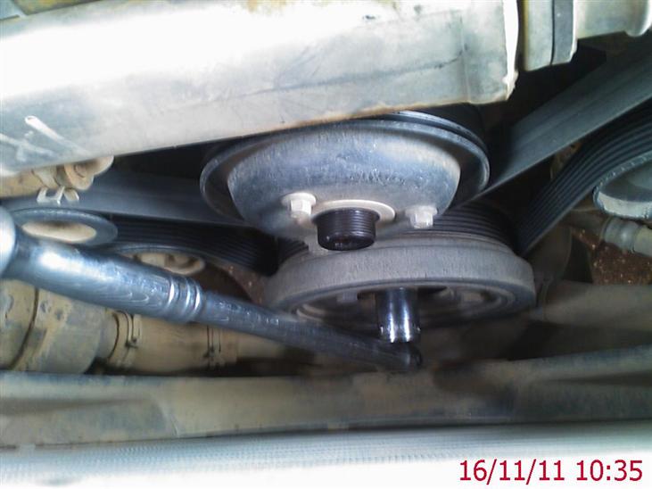 Now, to give you more room and to be able to rotate the engine, remove the viscous fan....
