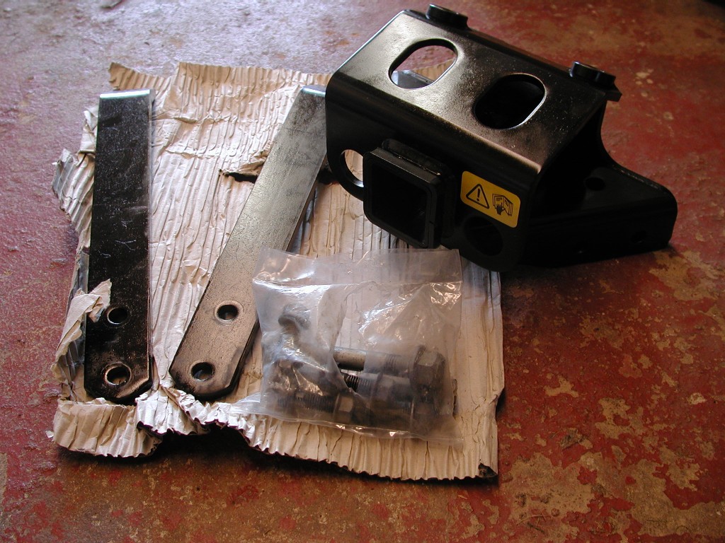 You get the main "body", 2 bars that fit to the same place on the chassis rails as the UK bars, a bag of bolts and instructions. The top mounting bolts of the body fit to the same locations in the rear cross member. It took me over 2 hours to "free" off one of the main bolts when removing my UK bar as it had been there a long time!!!. Fitting of the US style hitch literally takes 15-20 mins, you slave it all in position and then torque all the bolts up following the correct sequences and torque figures given in the instructions provided. Here is what it looks like all bolted up.