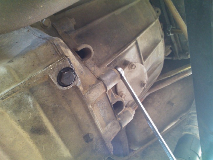 Now at the back of the sump, there is 4 bolts running forwards that go through the bell housing and into the sump. Remove all 4 of these.