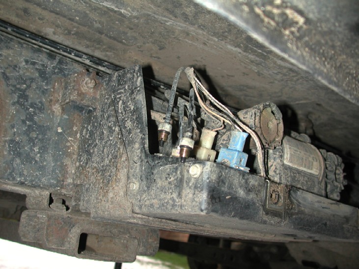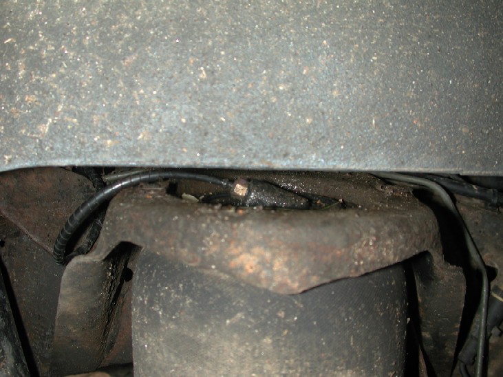 Under the vehicle level with the front passenger seat (UK car) the suspension compressor assy is housed in a small plastic box bolted to the outside of the left hand chassis rail. It has 2 "Zeus" quick release fasteners that once undone allow you to lift of the cover. Once the cover is off, a the front of the compressor assy you will see 3 unions / air pipes. We are ONLY interested in the outside 2 pipes NOT the middle one
