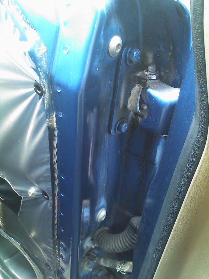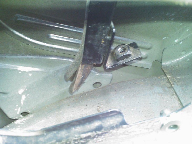 The next part is to remove the outer weather strip, that is held on the inside by 2 spring clips just exposed be removing the interior weather strip............. one at either end.....fwd one here..........