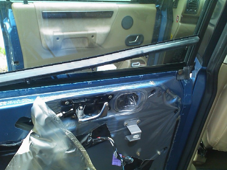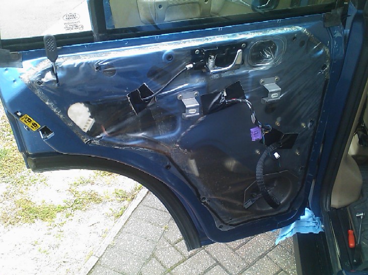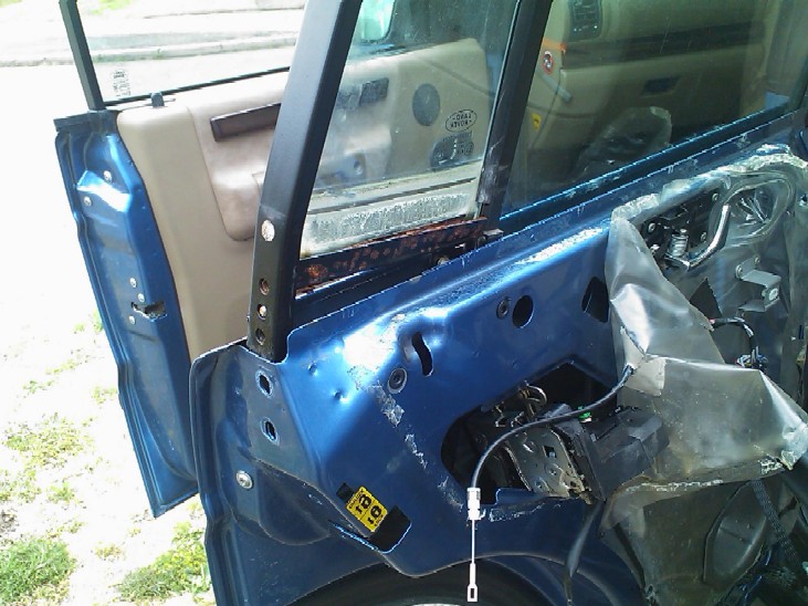 By all means do this with the motor still in the door (as I did), but if you have not seen or done it before then looking at the picture above will hopefully show you how its connected, there is enough slack to remove the motor and unclip it when its outside the door assy. Well that's about it really, its not a bad job if you follow the guidance I have provided here, hopefully you will find it useful. The refit is the exact reverse of the removal, don't forget to connect the interior handle cable, and both the lock button and outer handle levers when the lock assy is refitted to the door. If your splash guard was torn when removing it, then use a good quality duct tape or similar (not insulation or masking tape) to repair it. Where the splash guard is on the outer edges, it will still be able to be stuck back down with the factory "putty" used. The 2 rear doors are identical, and the front doors are similar, Passenger front door replacement will be added to the site very soon. Happy Rovering!!! :o) | |||