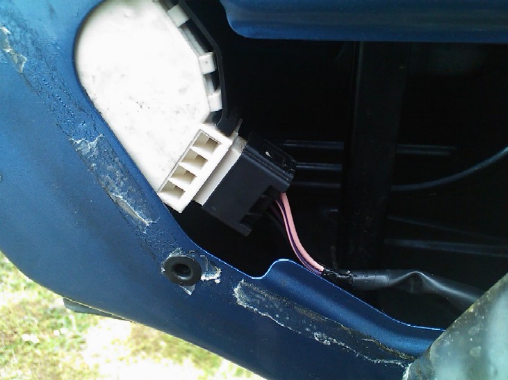 Now the door frame is "released" we can when needed lift it up to gain enough clearance to remove the door lock motor assy. So now disconnect the door lock electrical plug (below)