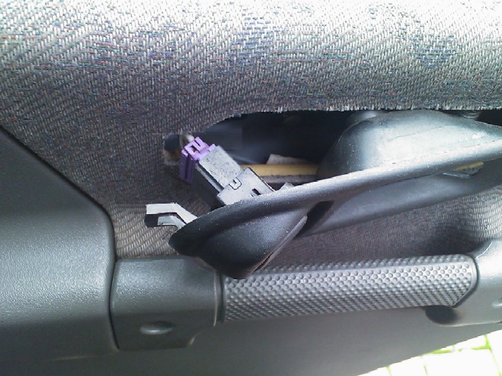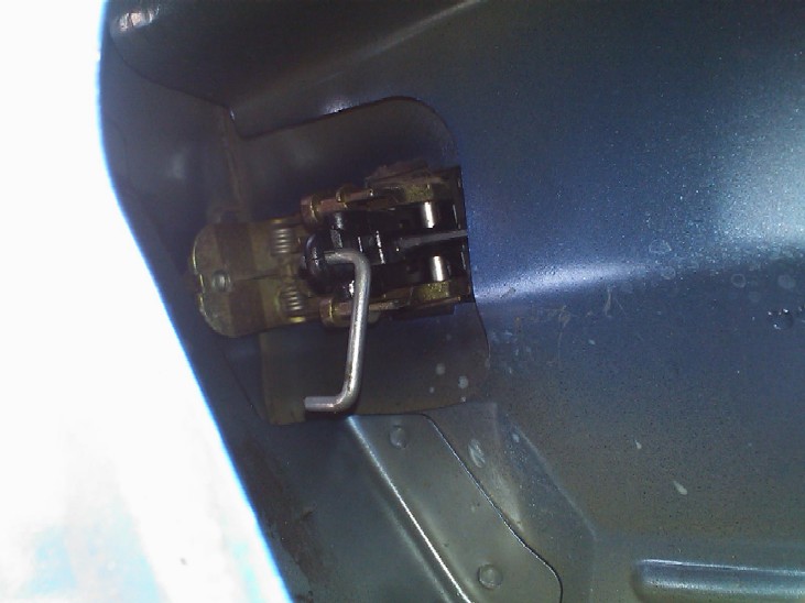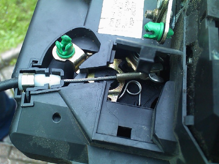 Below shows how the interior handle cable is connected to the lock assy, you lift / unclip the little flap, and remove the cable and un-hook it from the latch assy......
