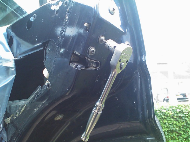 You could do that after the motor is out, but for me its better to do it whilst the motor is still held to the door assy. Now we need to undo the retaining bolts for the motor itself, these 3 are in the wheel arch face of the door.