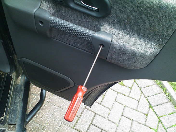 Above is what they look like, all 4 doors have similar assy's, but the drivers is slightly more complex as it has the key / switch assy on it as well. NOTE:- 2 different vehicles were used in this write up, but the pictures are from both rear doors. To start with you have to remove the door card / interior trim, to do this start with the 2 screws located in the door handle.