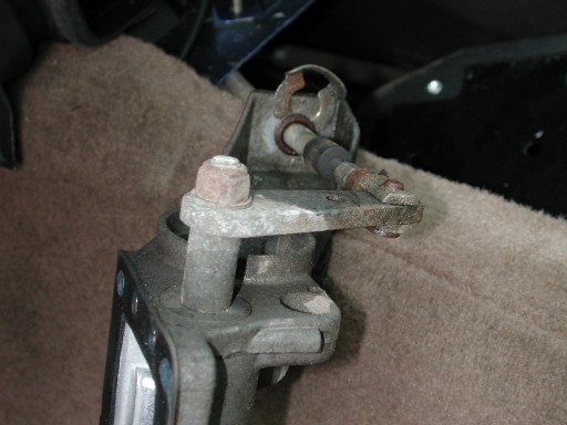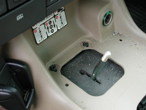 Picture to the left shows the new lever installed and the new "cut" in the transfer tunnel cover plate to accommodate the new lever assy