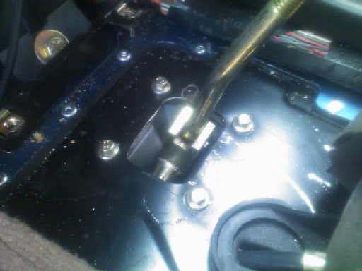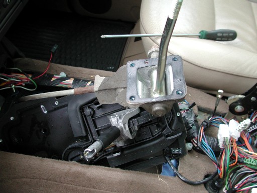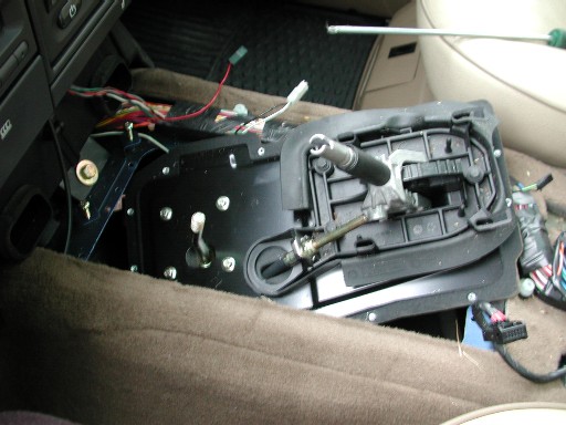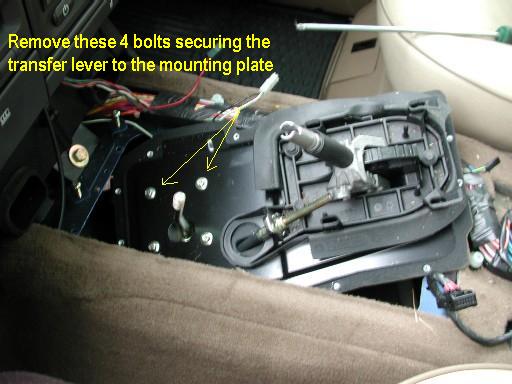 STEP 12 Once those 4 bolts are out, you can then move the lever out of the plate. Note there is no more access required and you don't have to disconnect the Auto cable either