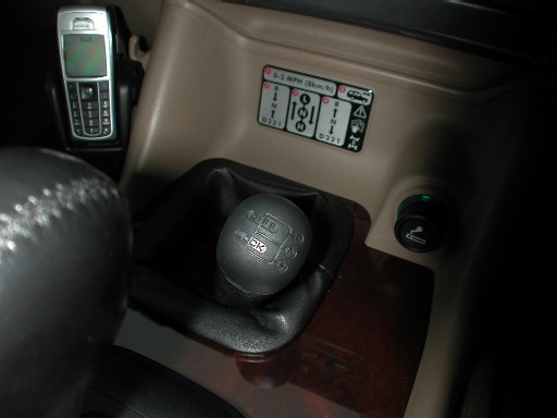 |  Diff lock Light on the Instrument Cluster The Discovery 2 Centre Diff Lock was not offered as an "in cab" driver control as it was "phased" out as the Traction control ABS system was introduced in the Discovery 2. However many of the earlier Discovery 2's still have the Centre differential lock installed in the transfer case and it just simply needs connecting up. The picture above shows the dash light that lights up when the diff lock is engaged. Below is the transfer lever knob that has the diff lock embossed on it as well as high - low ratio