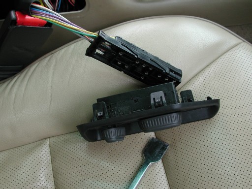 Next, My car has a wood trim panel, this just lifts out of place, as you get some clearance behind it, disconnect the electric window and heated seat switches.