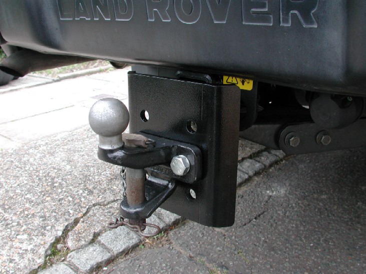 | After removing my UK spec tow bar and Fitting the NAS tow Hitch, I had temporarily lost the actual tow ball part of the towing setup, but as I don't tow anything that often, It was a while before I got something sorted. I did consider modifying the existing drop plate from my UK tow bar and using that, but by the time I had probably paid someone to weld a square 2" tube onto it, I could probably have bought one anyway. So I searched around and came across this one below. Its made with the same thickness of steel as the original, and also has a black powder coated finish It has 3 positions to bolt the tow ball in, so its as "adjustable" as the previous UK fitted tow bar, I used my existing Dixon Bate Tow ball and Pin so even with the drop plate fitted in the NAS hitch, the pin option for recovery is still there to use if needed.