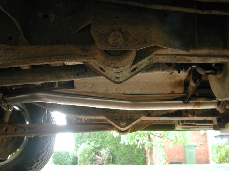 | Whilst at the Billing Land Rover show, amongst the offroading, a little shopping was done. I did not really need that much at the time, although you "could" spend thousands at Billing as we all know!! However whilst wandering around I found the Twisted performance stand who do exhaust upgrades for the TD5 amongst others. One of the common ones is to replace the middle silencer with a "straight through" pipe. I bought one on the day and fitted it myself. It fits very well into the factory system, and being made from stainless steel, it will outlast the rest as well. If you bolts on your exhaust all come undone with no issues, it would not take long at all to fit. Mine was a little more difficult as the studs on the rear section that connect to the middle silencer were basically no good to even attempt undoing them. So with this in mind I cut the studs off, this allowed me to get the mid and rear section of the exhaust apart. The front to mid section came undone no problem, as this had been un done not to long ago when I had a new front / down pipe fitted.