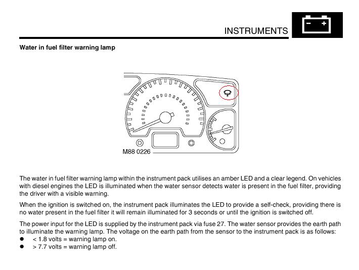 The Fuel Filter also incorporates a water sensor to warn the driver if there is to much water in the fuel by illuminating a light on the dash.