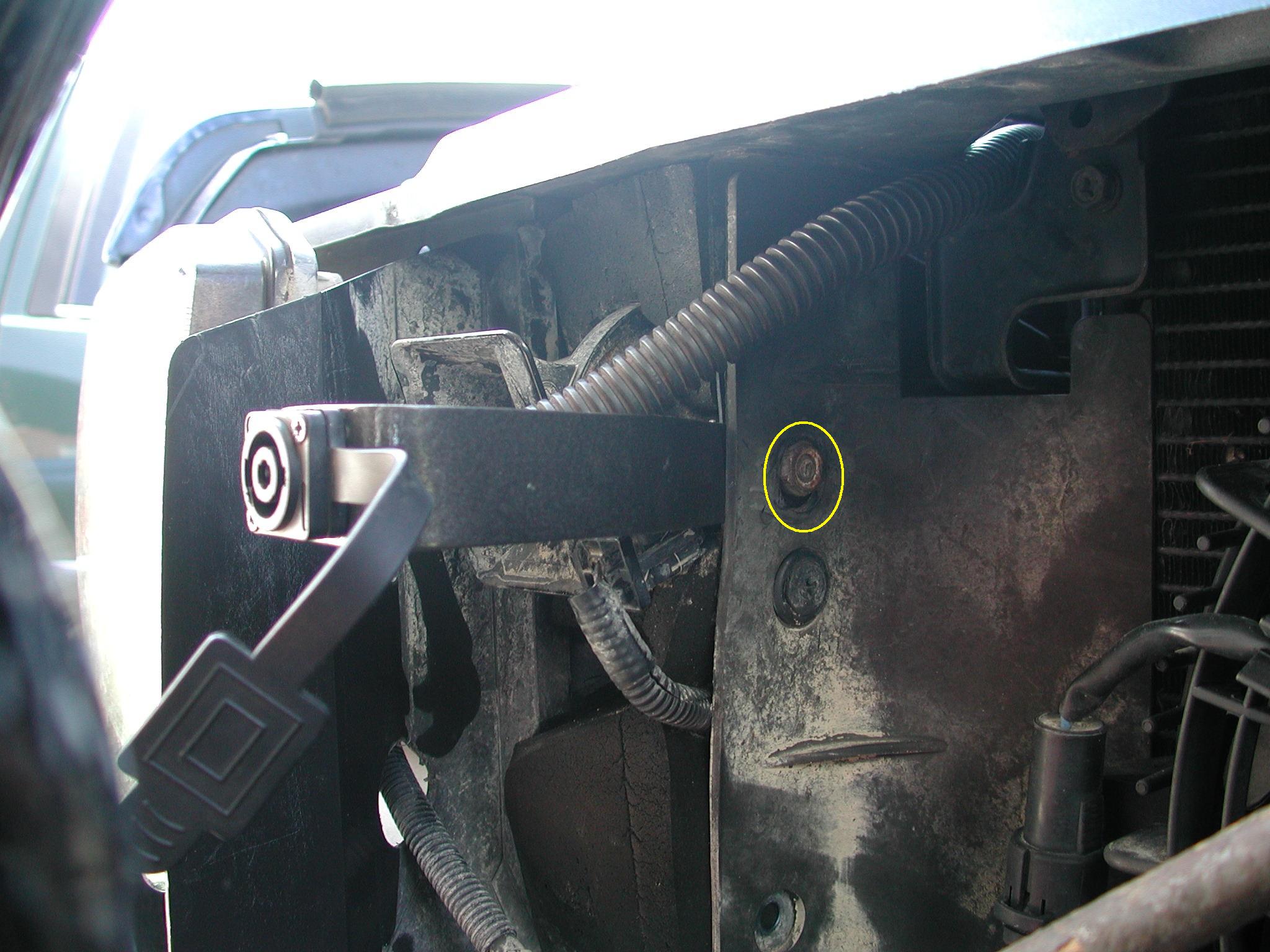 In there you will see another 10mm bolt that holds the bracket on the engine side of the front bulkhead. Its the same for both sides of the car, and can easily be access by a ratchet and an 8 or 10 inch extension.