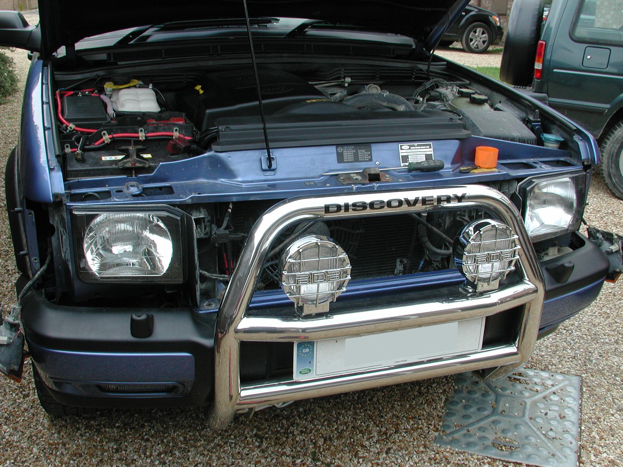 | The Discovery 2 TD5 has an intercooler fitted like most if not all other Turbocharged cars. Its actually in the maintenance schedule to remove the intercooler for cleaning. If you car has had a full service history, then there is a good chance it's been done already. With today's vehicles having to meet stronger emissions laws, and because of the way the crankcase ventilation is routed back through the intake / intercooler on the TD5 engine, the "oily" vapor can accumulate in the intercooler and over time reduce its effectiveness, thus affecting performance. Removing the intercooler is a worth while job to ensure its clean and in the best condition possible for your engine. The official workshop manual tells you to remove the viscous fan to get the intercooler out, how ever I have recently done this job without disturbing the viscous fan. Below I will illustrate and describe as best I can, what I did so you could tackle the task yourself if you suspect it needs doing. **If you have ever removed your front grille on your Disco 2, then that is also required to be removed for the intercooler job. So get yourself to that stage and then follow on from there** **If your vehicle is fitted with Factory Lamp Guards, these also will need to be removed to gain access for removing the Indicator lamps and front grille** So, first of all remove the top acoustic engine cover by removing the 3 x 13mm bolts, 1 on the drivers side and 2 on the passenger side