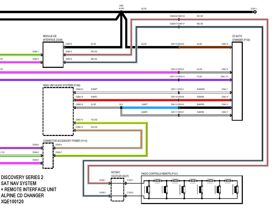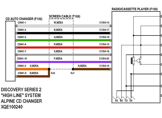 Ok, now the CD changer issues. The "high" line factory system uses an Alpine Cd changer, part number XQE100240. The Becker unit is also fitted with and Alpine changer but it has a different part no XQE100120. I knew this before I did the install and after reading all the wiring diagrams it soon became clear that my existing changer would probably not work. Although it uses the same loom in both setups, the pin arrangement is different, and in particular the audio side. The standard unit has a + and - for both left and right audio out, but the changer that goes with the Sat nav unit, has a "common" - for the Audio connections. With this in mind and the fact I really wanted to retain the CD changer, I took the plunge and re-wired my factory CD loom to how the Sat nav changer is wired, with a common Audio ground, and it worked. The CD changer was recognised by the Head unit and would control it in every way a factory install would, but....always a but !!..there was a small amount of "alternator" noise or interference while the engine was running, and when the changer swapped to another disc, you could hear what was going on through the speakers. To try an fix this issue I added and Additional earth from the changer straight to the chassis as the loom is earthed via the head unit, this how ever didn't completely fix the issue. There maybe a way to fix it permanently, therefore you would not need "another" CD changer, I did do a little web searching to try and find a fix, but because it worked ok, I lived with it until I was luck enough to get the correct one This "noise" I can only assume is something to do with the common ground used for the audio connections because I recently purchased the "correct" changer, simply plugged it in and its 100% perfect !!, note this is not simply plug and play, you still have to re-arrange some of the other pins on the factory cd loom, this includes the serial comms wire that in the standard setup goes directly to the head unit, but with the Nav system it runs via the remote module interface (above) Below is the 2 wiring diagrams for the different CD changers, first the standard "high line" system