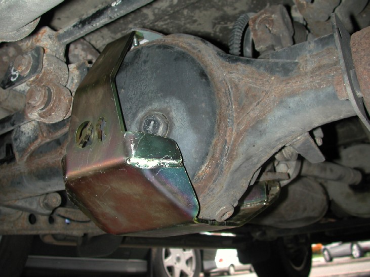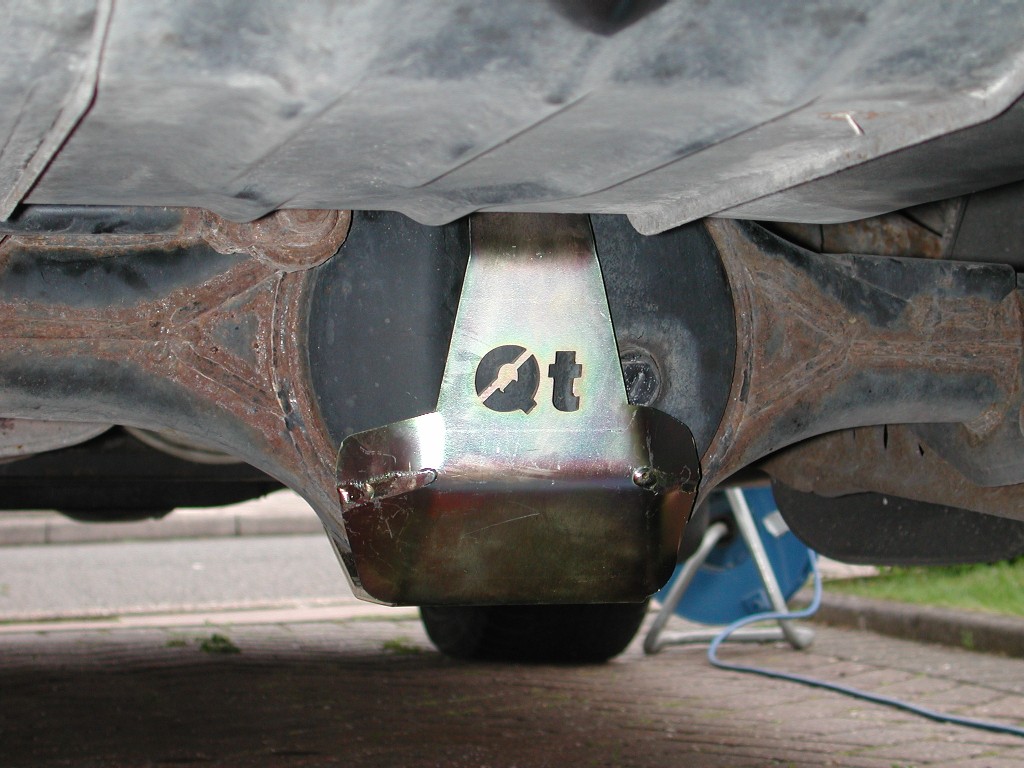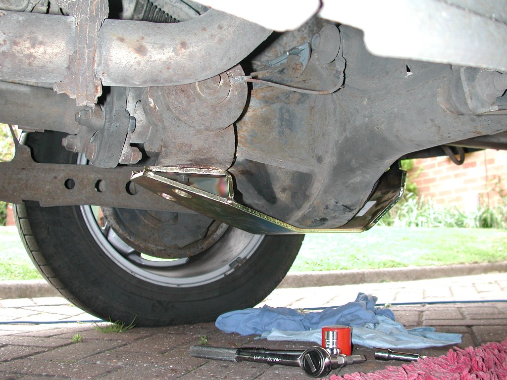 It comes with good instructions for fitting, the main guard, top bracket, and a few bolts. Follow the easy to read installation instructions and you cant go wrong. The top bracket is fitted to 2 existing diff flange bolts, you then hold the guard in position and loosely fit the front to bolts, and the top bolt that secures it to the top bracket. Once its all in place tighten all the bolts up firmly and job jobbed!!. I did it buy just crawling underneath, but if the car is over a pit or up on a ramp, it would be even quicker and easier. Below is what it looks like fitted, It still leaves access to both the fill and drain plugs of the diff as well.