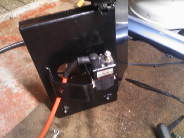 With the tray now fully installed, the split charge relay was mounted where the single Albright was.....