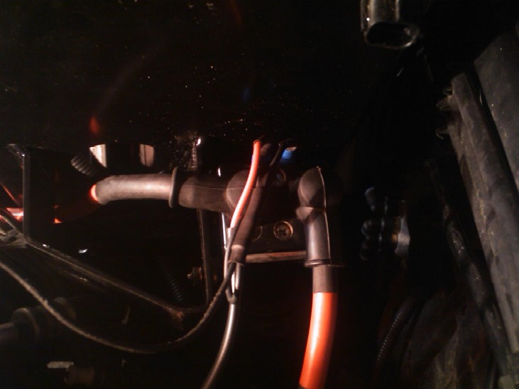 These only cost a few pounds and can be bought from Halfords, Ebay and lots of other places, I picked one up at my local motor spares shop. The clamp although is adjustable didn't suit my needs 100% as the rods were longer than needed and so was the top clamp. So, to modify that I worked out where the clamp was going to fit (keep it away from the terminals) and cut the rods to the length I required and simply re-bent the "hook" ends with a trusty old hammer and vice!! On the heat shield end, I drilled a hole on the end plate.......