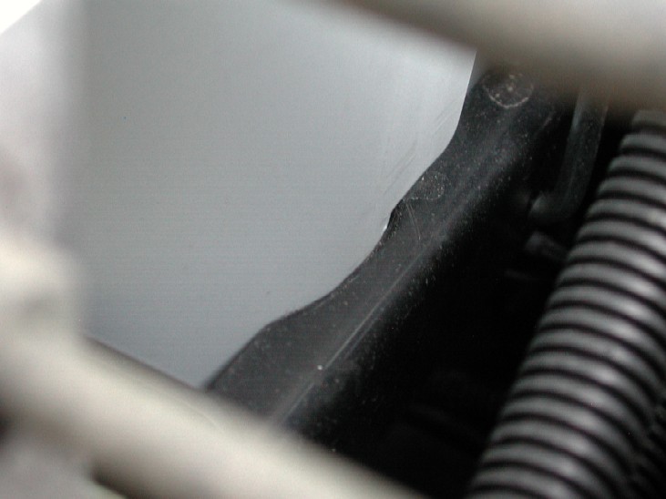 The Exide is very similar in size to the Optima, and If I did not already have an Optima, the Exide would have been the next choice, its very similar in cost and comes under the same BCI 34 grouping. The end plate will not fit / hold down the Optima battery, but it does provide a "heat" shield for the battery from the heat generated by the turbo, which is a HIGHLY recommend thing when installing a battery in this location. It is also recommended that you fit either a sealed AGM or Calcium battery as they are more resistant to the heat generated in that area by the turbo /manifold than a standard lead acid one, which have been known to "boil". The Optima won't fit snug with the end plate bolted to the tray in its designed way, so I simply turned the end plate around the other way, this allowed the optima to fit in the space and would provide a makeshift heat shield as well as a place to mount a hold down clamp for the battery, but this meant the Optima sat elevated one end on the bolt heads, so was not flat in the tray, to overcome this I simply modified the tray with a rotary file to fit the "shape" of the Optima better, below you can see where I removed some of the tray material.