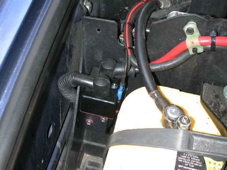 Because its a "modular" design, the grey lead comes already pre terminated to be able to fit a remote paralleling switch if you want to, but all I needed was the negative wire (black) from that loom for my install, so I remove the plug and connected the earth up to the ground that the x-eng had used that terminates just by all the other earth terminals on the car. As I said, it was a "tight" fit, but it goes in and that's about all you can fit in there, if I did not use an Optima battery there is no way it would fit in the battery box,