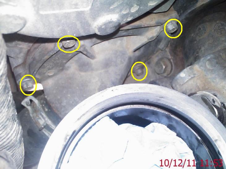 4 of the bolts are circled above, the 5th bolt is just under where the hose connects to the cover...Now this is where tooling is important, THE most handy tool for this job is a 8mm ratcheting spanner.....
