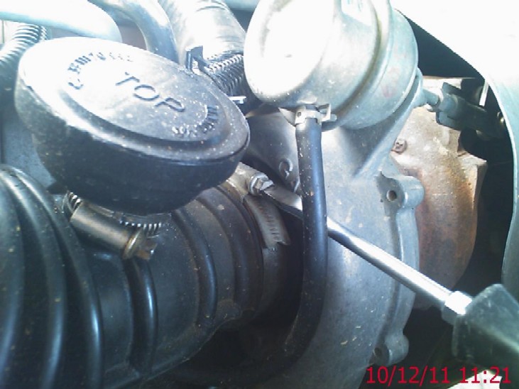 Next we need to remove the metal intercooler intake tube, so disconnect it at the turbo end.....