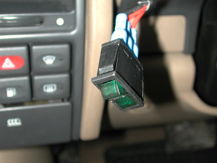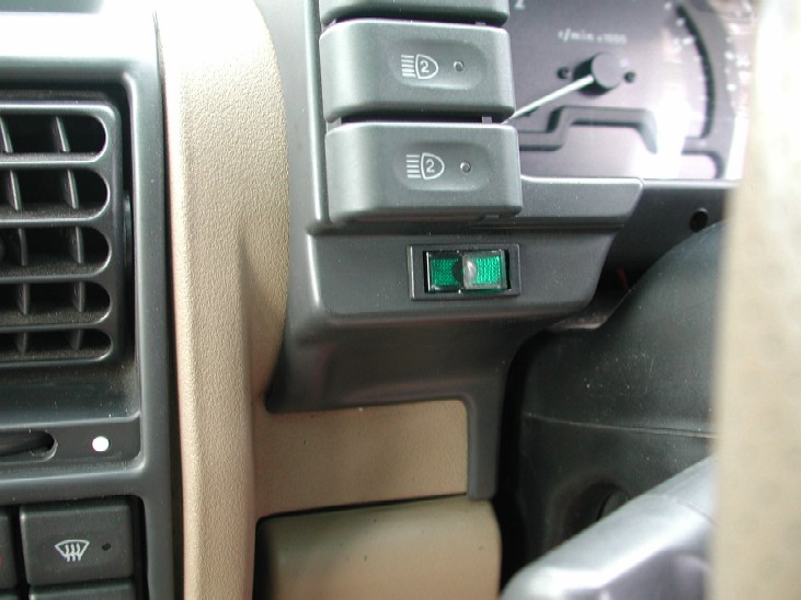 The Discovery has a small "blank" on the dash binnacle below the factory fog light switches, this is where the "factory" winch cut out switch is designed to go. I'm unsure of what type of switch they use, but a standard 3 pin 12v automotive switch can be bought from Halfords and then its just a case of cutting the hole to fit. See the "blank" here below my factory Spot light switches, it is only on the left hand side (UK car.)   Here is the switch I bought, I chose a Green one to match the existing colours of the dash lights, but you can get them in Red as well. It has 3 connections, +12v , Ground and an ACC connection which is basically the +12v feed to what ever your controlling, in my case the solenoid